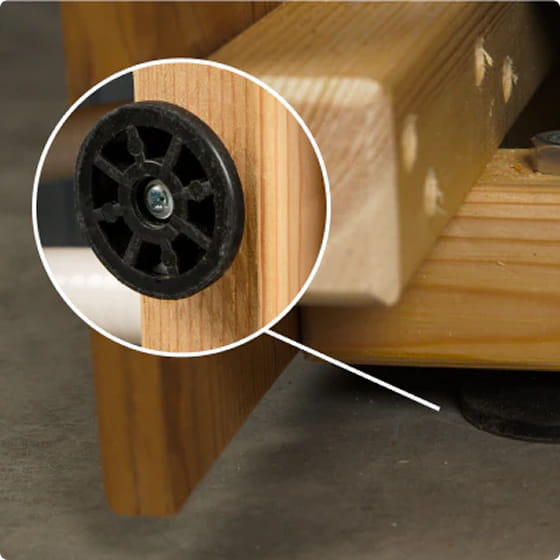 Padidinkite stabilumą ir apsaugokite tiek filtrą, tiek paviršių po juo. Laikydami įrenginį šiek tiek pakeltą, jie padeda išvengti vejos, terasų ar terasų pažeidimų ir užtikrina tinkamą oro srautą aplink filtrą.
