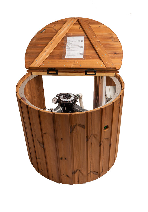 Viskas įskaičiuota malkomis kūrenama sūkurinė vonia su oro ir hidro purkštukais | Smėlio filtras ir UV-C | 4–6 vietų