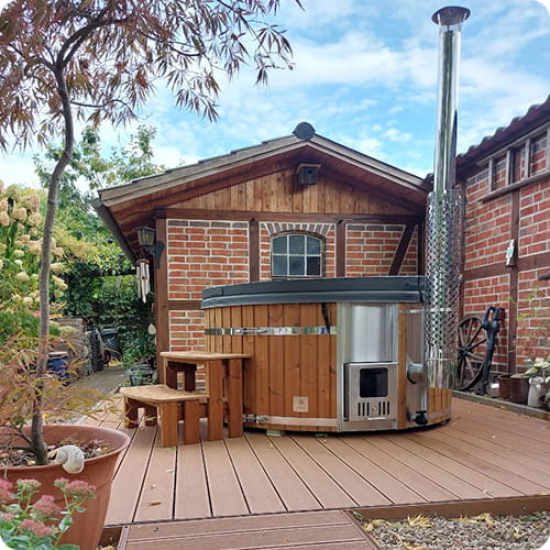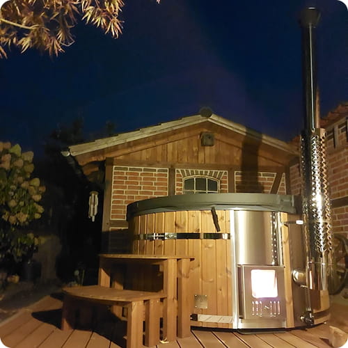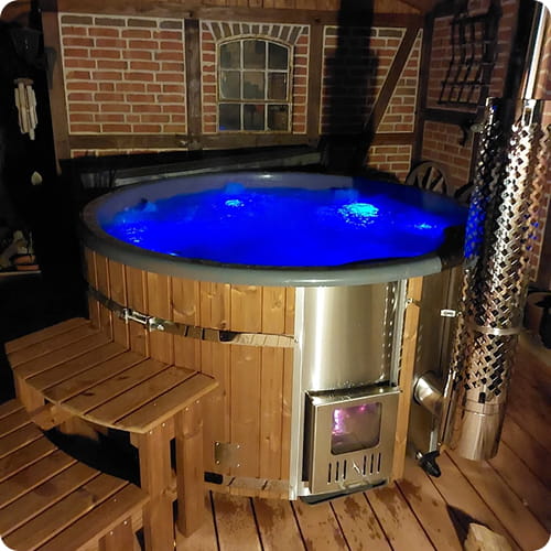 Viskas įskaičiuota malkomis kūrenama sūkurinė vonia su oro ir hidro purkštukais | Smėlio filtras ir UV-C | 4–6 vietų