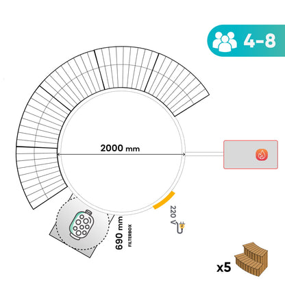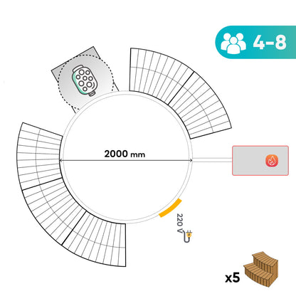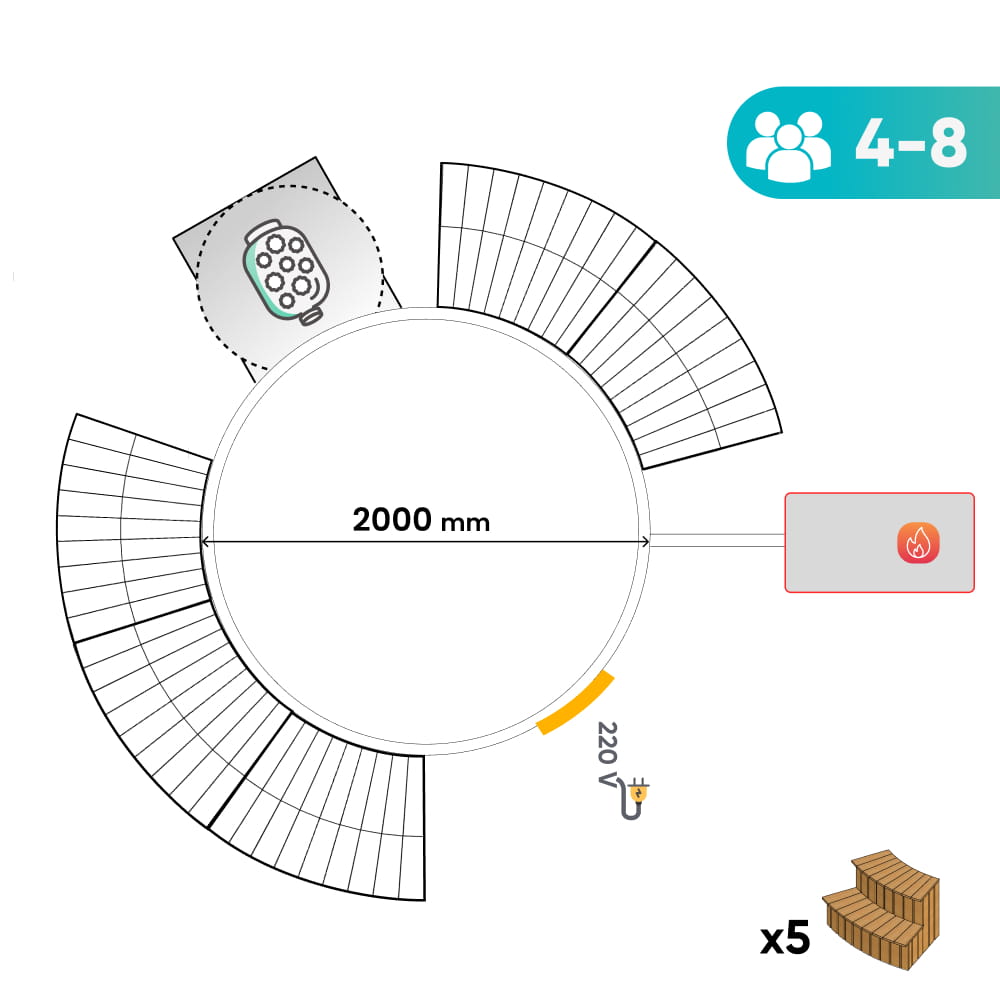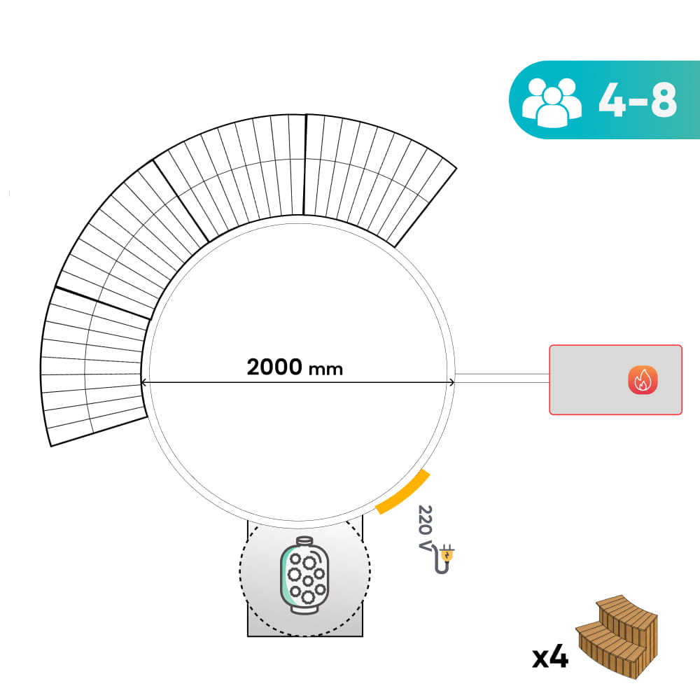 Viskas įskaičiuota malkomis kūrenama sūkurinė vonia su oro ir hidro purkštukais | Smėlio filtras ir UV-C | 4–6 vietų