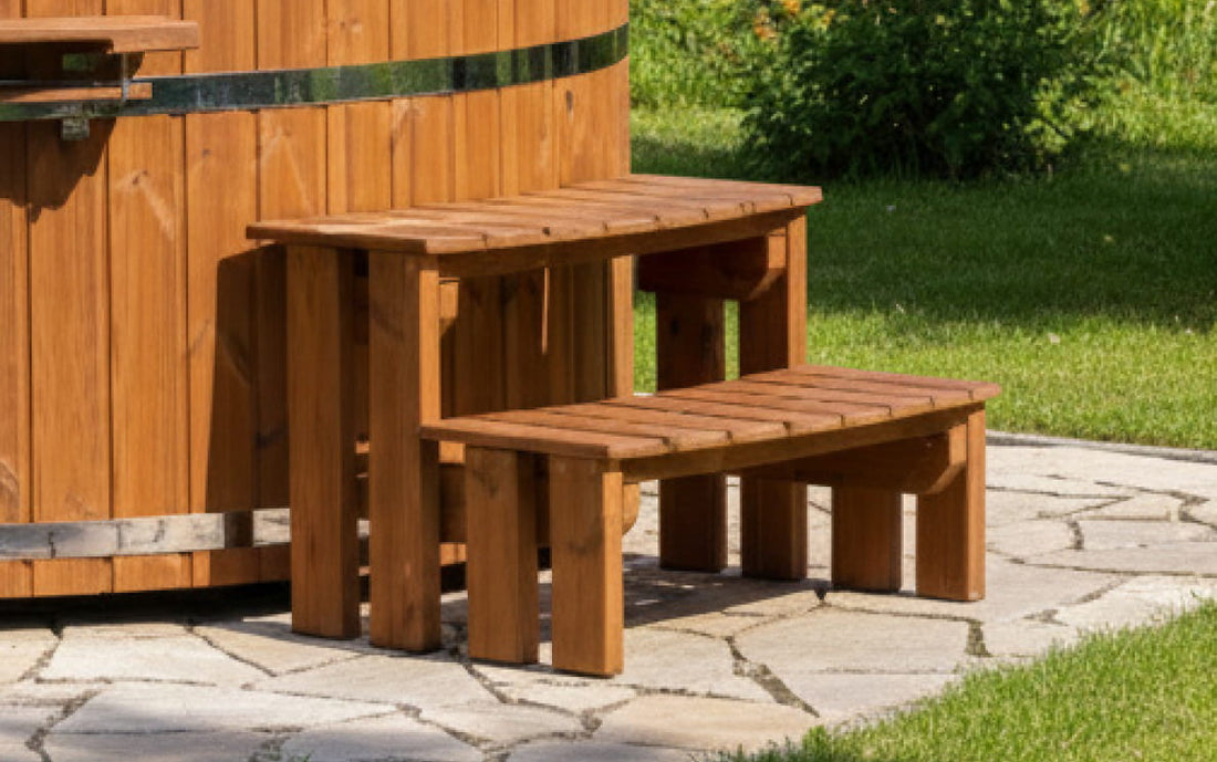 Visi mūsų kubilų laipteliai pagaminti iš patvarios, ilgaamžės „ThermoWood“ medienos