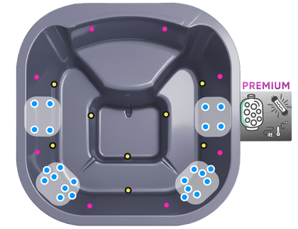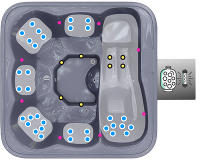 - 34 hydro jets, 8 air jets, 8 LEDs