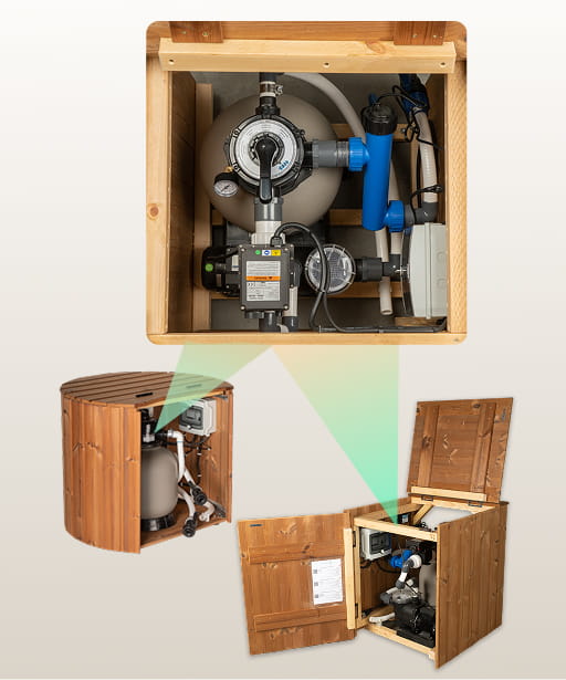 Daugelyje mūsų iš anksto sukonfigūruotų modelių standartiškai yra įrengta „Premium“ filtravimo sistema, įskaitant įmontuotą 3 kW šildytuvą. Jei pasirinksite paprastesnę konfigūraciją, visada galite ją atnaujinti ir pridėti šią funkciją.
