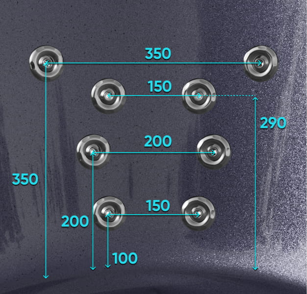 Priklausomai nuo modelio, hidropurkštukų skaičius svyruoja nuo 24 iki 34, todėl masažo intensyvumas atitinka skirtingus atsipalaidavimo poreikius.